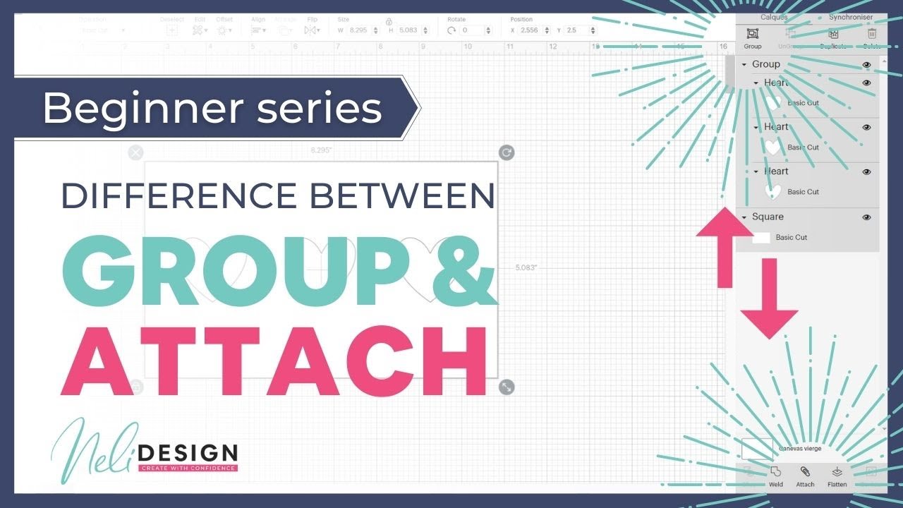 The difference between Group and Attach functions in Cricut Design Space Can't totally get the difference between Group and Attach tools? I'm here to help with this short and straight to the point tutorial! You'll never be confused again!