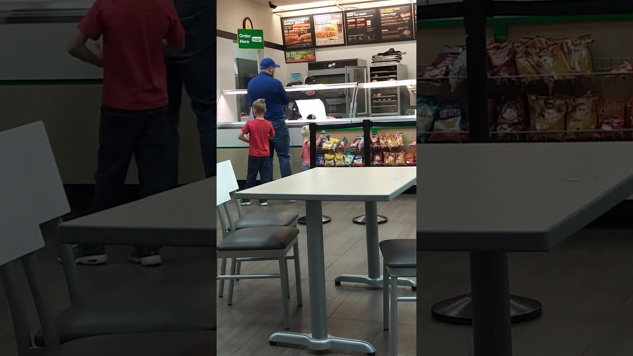 Kids wife and good example of how to bring your puppy while ordering food for the family