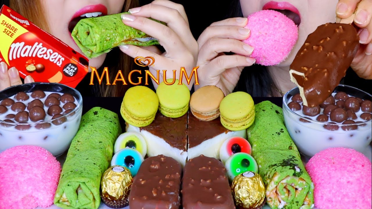 ASMR MOST POPULAR DESSERTS (EDIBLE TOWEL CREPE CAKE, MALTESERS, SNOBALL, NUTELLA CHEESECAKE, GUMMY먹방 ASMR MOST POPULAR DESSERTS (EDIBLE TOWEL CREPE CAKE, MALTESERS, HOSTESS SNOBALLS, NUTELLA CHEESECAKE, TROLLI GUMMY EYEBALLS, MAGNUM ICE CREAM BARS, MINI MACARONS 먹방