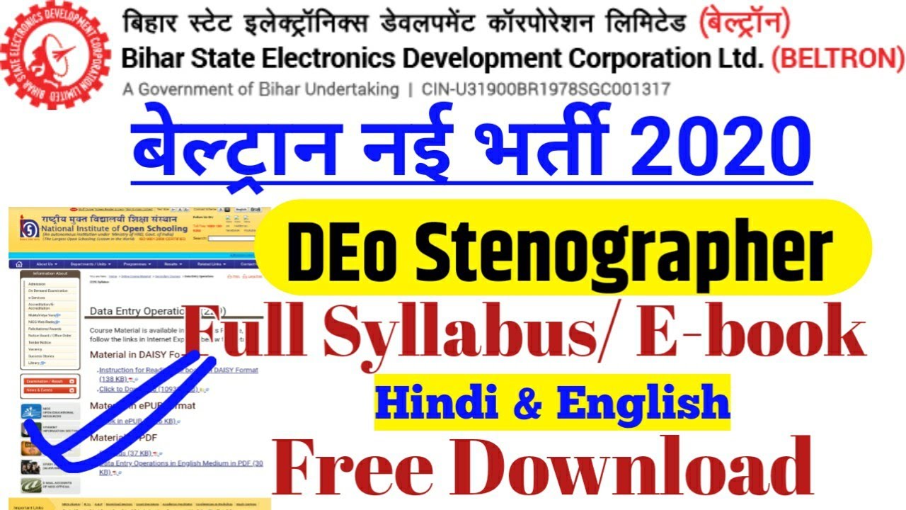 ●About this Video:-BELTRON DEo-Stenographer e-Book|Stenographer NIOS Syllabus| Hindi/English_Free Download,Bihar Job