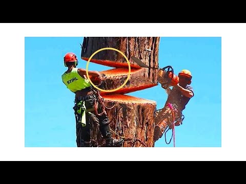 Dangerous Tree Cutting Skills Hanging From Tree Compilation of a variety of proper equipment and the most advanced technology for sawing wood. Dangerous tree cutting skills hanging from tree. Awesome on the edge footage of man cutting tree high in the sky.